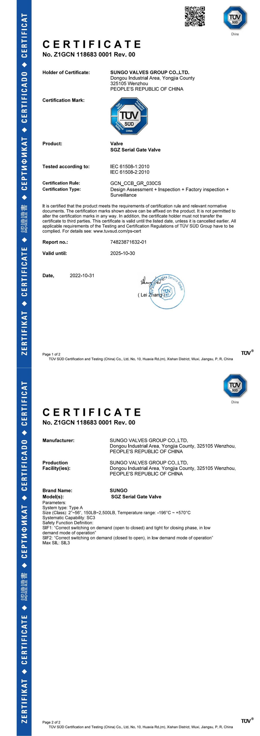 SIL Safety Certificate